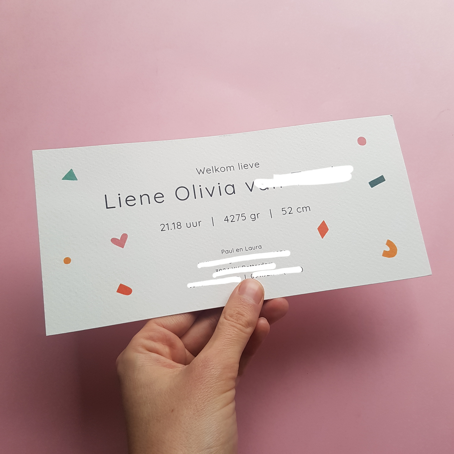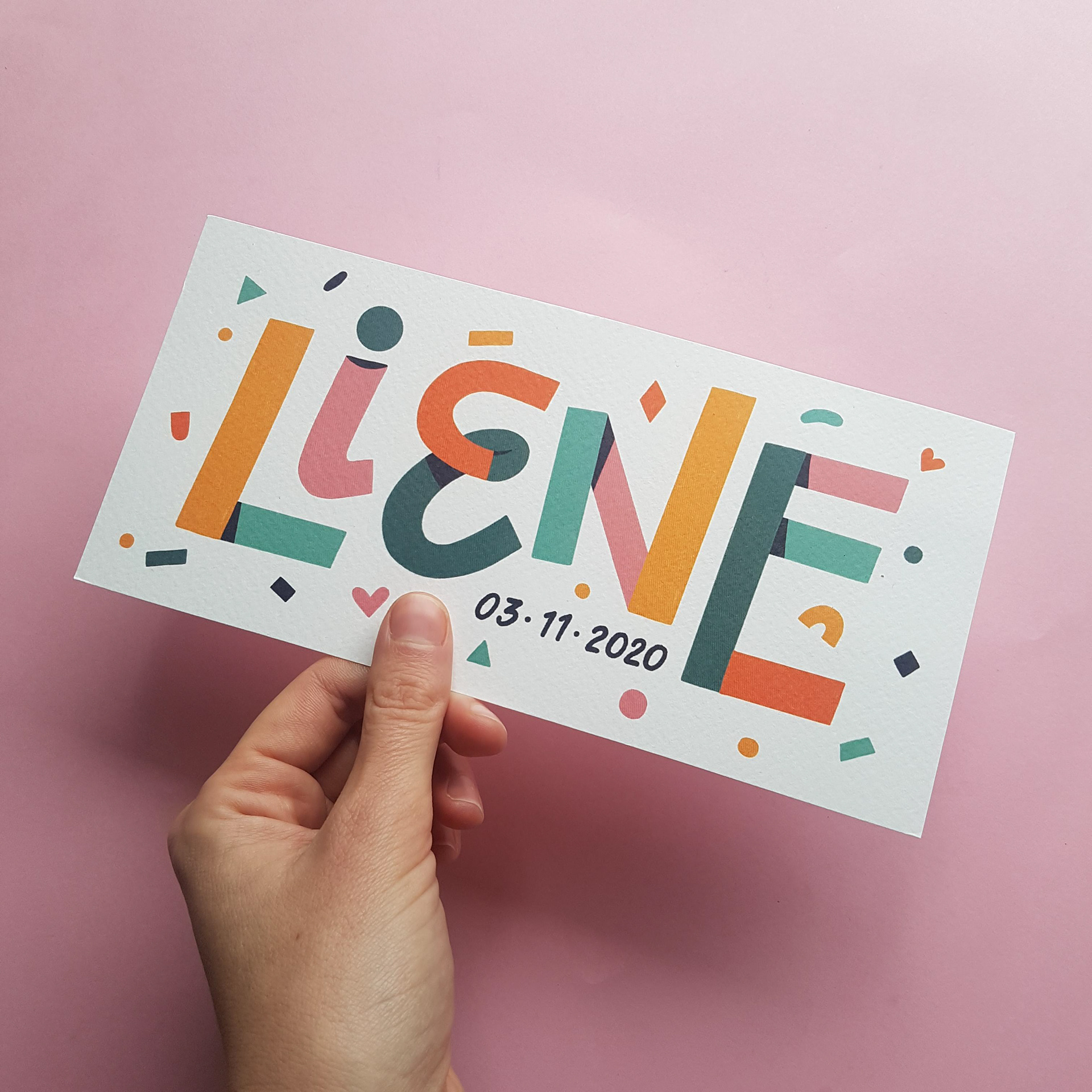 On request I also make birth announcement cards with (colorful) lettering like the examples below. Different paper options possible. Contact me for more information!